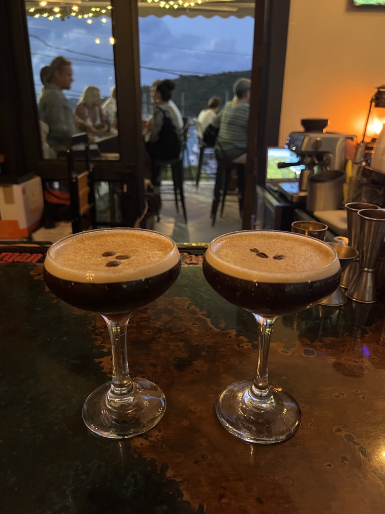 Mid afternoon we like to have a coffee, but we also like ice cream, and perhaps a first cocktail of the day. So why not have all three in one? Cruz Bay Landing makes a good coffee cocktail. Sit at one of their tables, or get one to go.