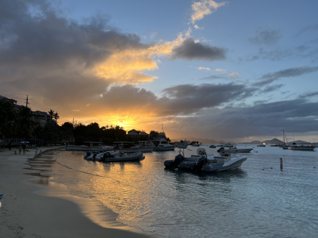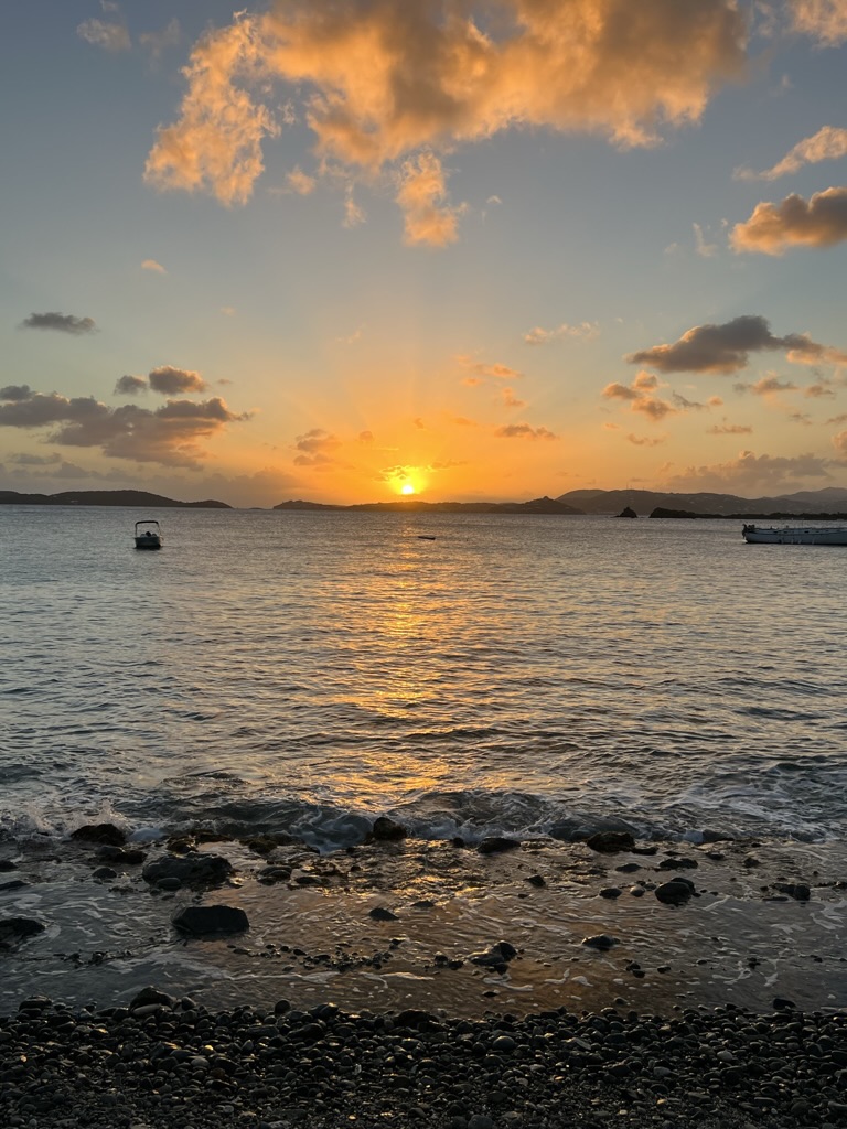 My favorite sunset spot in Cruz Bay is a 5 / 10 min walk from the beach bars at Frank Bay (go towards the Gallows Point resort and keep going). You can sit on the wall, listen to the waves, and watch the sun go down. If you go earlier then pop in at the gallery of Elaine Estern right behind the beach.