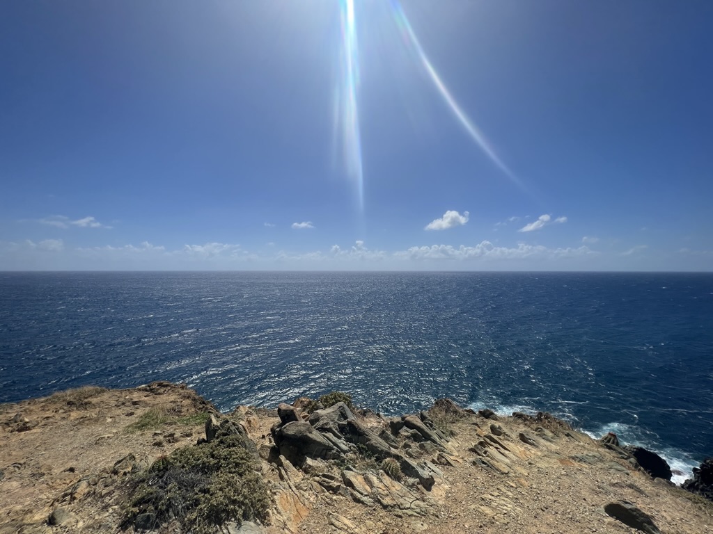 I love Honeymoon for two reasons - it’s super chill, and because of how we get there … which is to walk into “downtown” Cruz Bay, then 1 mile through the national park along the Lind Point trail. For whatever reason most people don’t know that this is possible! But it’s just a beautiful short walk along a ridge line running along the coast. At one point the trail splits - we took the very-slightly-more-strenuous route (the “upper” trail) on the way to the beach to visit the viewpoint overlooking Cruz Bay.