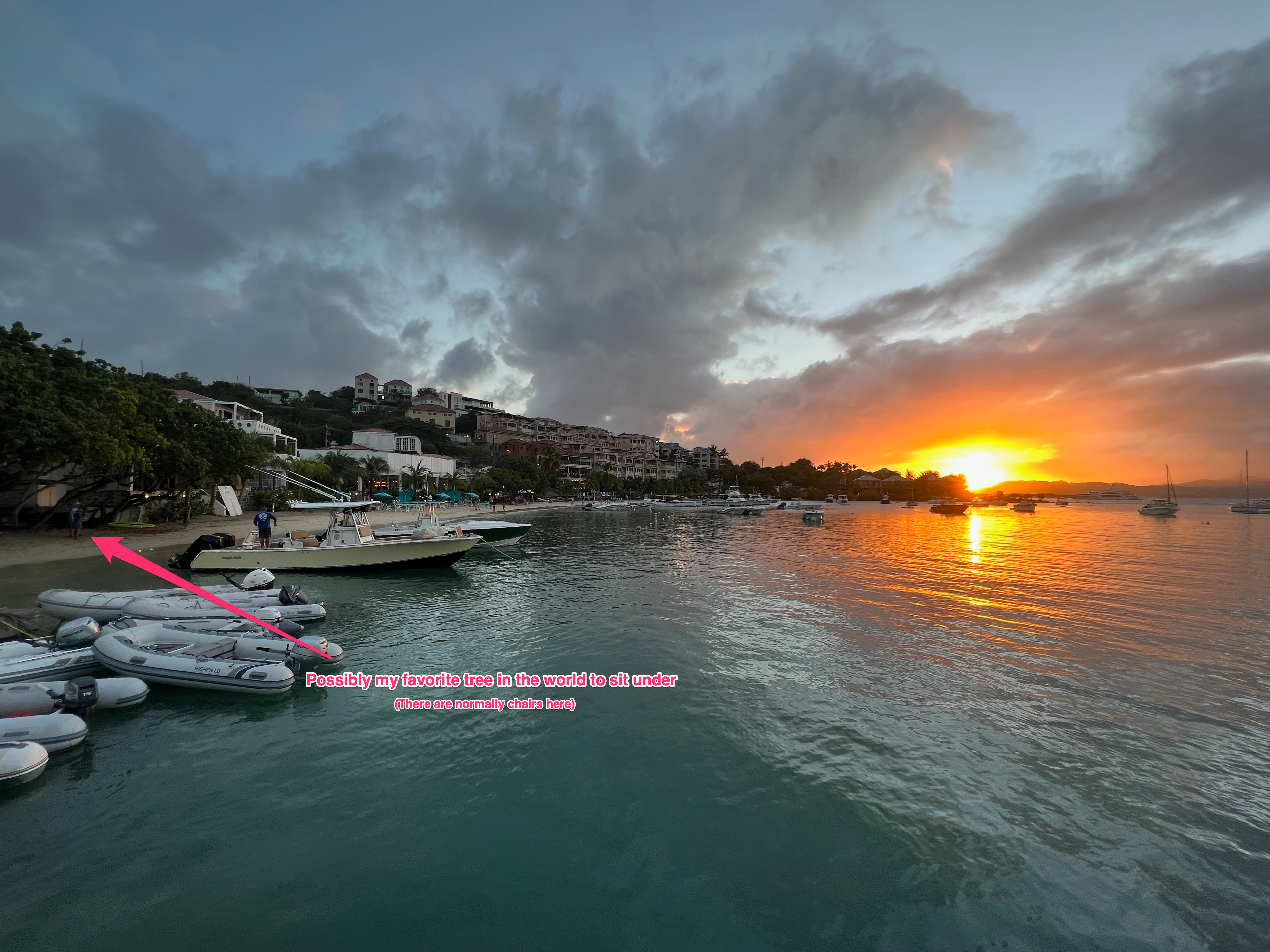 For the evening we went to our second meal that we had a reservation for - Zozo’s. Zozo’s is currently located at the site of the former Caneel Bay Resort (Zozo's has had a few homes in its history.) Caneel Bay Resort used to be one of the fanciest places on the island to stay, but it was destroyed by hurricanes Irma and Maria in 2017. For reasons that are far too long and complicated to get into here, it hasn’t (yet) been rebuilt, and it might never be. Zozo’s is the only thing that’s been put back together. One of the reasons the resort was so special (we never stayed there) was because, even for St John, it’s in a breathtakingly beautiful spot. So dinner at Zozo’s - especially if you get there around sunset - is spectacular. We felt the food didn’t quite live up to the location this year, but it’s still worth a visit.